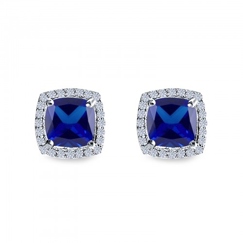Halo Cushion Bridal Earrings Simulated Black CZ 925 Sterling Silver