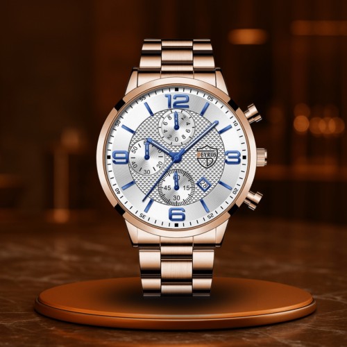 Dominor is niet zomaar een horloge – het is de stille echo van jouw houding. Gemaakt voor zakenmensen die niet alleen afspraken nakomen, maar ze ook creëren. Met een elegant huis van roestvrij staal, een band van echt leer en een nauwkeurige quartz uurwerk verenigt het vorm en functie tot een uitdrukking van betrouwbaarheid en klasse.