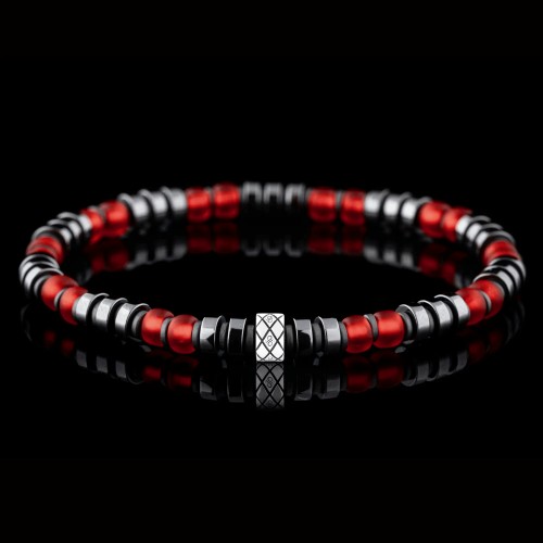 This bracelet captures the essence of nature. It features the deep green of Dragon Blood Jasper and the vivid red of Garnet, with intricate patterns in every stone. This rich color contrast looks strong and full of life. These stones are traditionally associated with courage and passion.