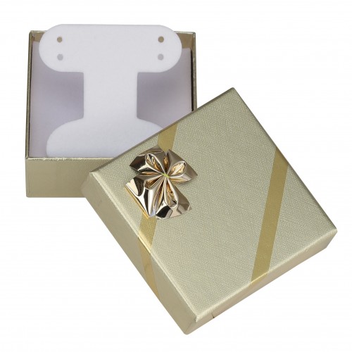Elevate your jewelry presentation with A&A Jewelry Supply’s stunning metallic earring boxes, beautifully accented with elegant bows. Crafted with a luxurious finish, these boxes add a touch of sophistication to any ring, making them perfect for special occasions or gifting. The interior features a soft, plush lining to cradle your precious pieces securely. Available in gold and silver.