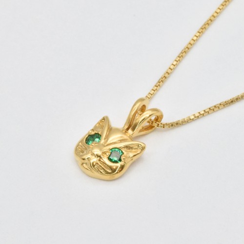 Emerald Cat Pendant – Gold Emerald Necklace, Green Eyed Cat Pendant