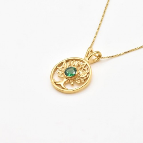 Emerald Tree of Life Pendant set with a Created Emerald in a perfect clarity and radiant green color, at 5mm size (0.5 Cts)