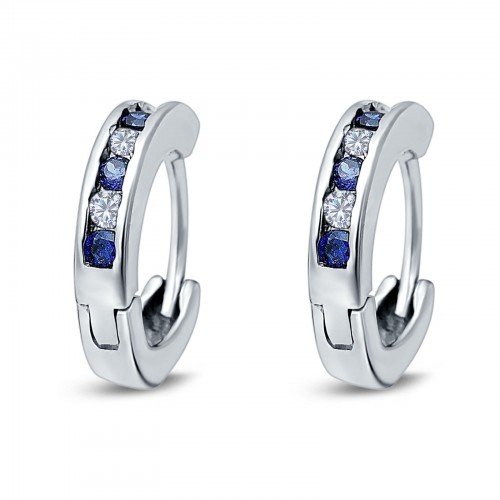 Eternity Huggie Hoop Earrings Channel Round Simulated Blue Sapphire Cubic Zirconia 925 Sterling Silver