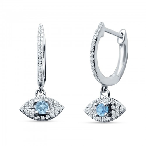 Evil Eye Huggie Hoop Earring Green Emerald CZ 925 Sterling Silver Wholesale 20mm
