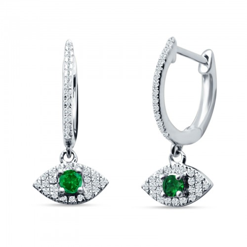 Evil Eye Huggie Hoop Earring Ruby CZ 925 Sterling Silver Wholesale 20mm