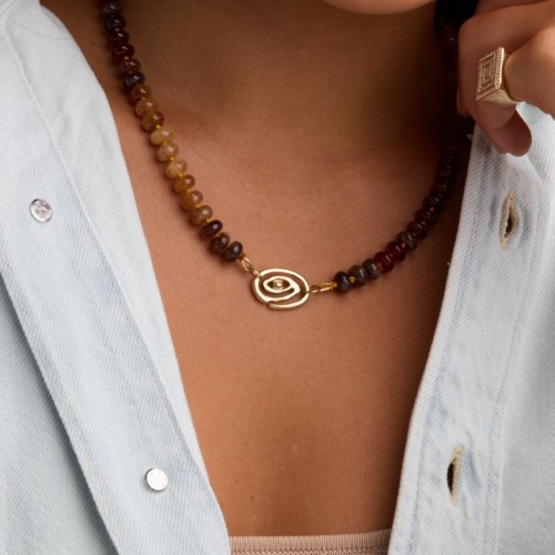 The mix of gemstones brings warmth and vibrancy, while the gold detail elevates the piece with a timeless finish. Designed to be worn effortlessly on its own or layered with other favorites, this necklace offers a striking balance of color, texture, and elegance that makes it a standout in any collection.