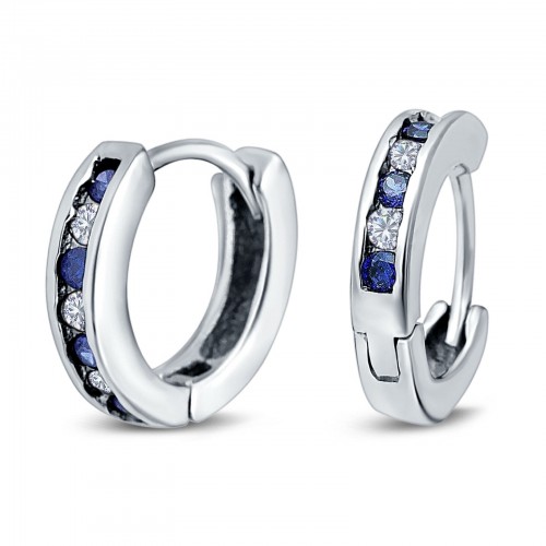 Eternity Huggie Hoop Earrings Channel Round Simulated Black CZ 925 Sterling Silver (14mm)