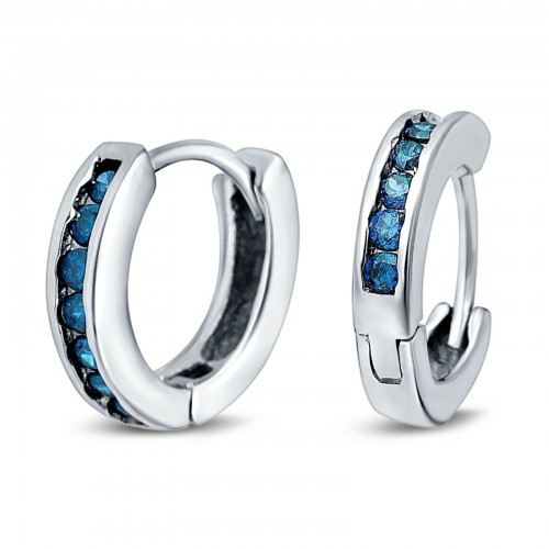 Huggie Hoop Earring Round Bezel Simulated Black CZ Stone 925 Sterling Silver