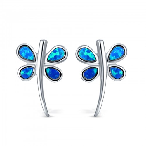 Firefly Stud Earring Lab Created Blue Opal 925 Sterling Silver (18mm)