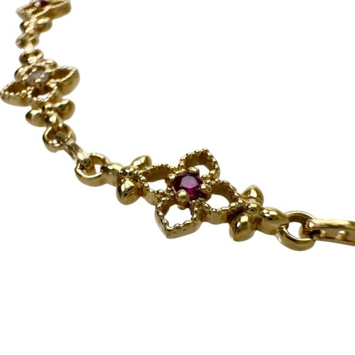 Flower Motif Au750 Ruby Diamond Bracelet Gold Yellow Gold
