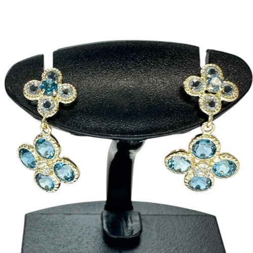 Flower Motif Blue Topaz Au750 Earrings Gold 18K Gold
