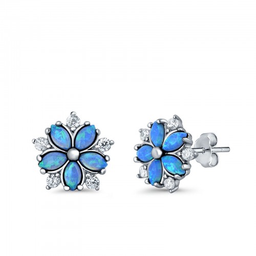 Flower Stud Earrings Lab Created Blue Opal Simulated CZ 925 Sterling Silver (9mm)