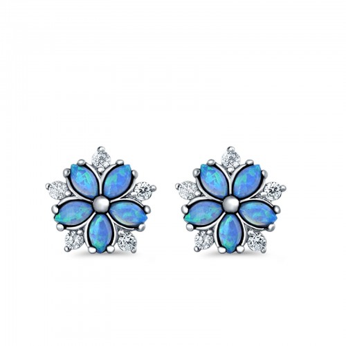 Frog Stud Earrings Lab Created Blue Opal 925 Sterling Silver (6mm)