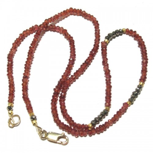 - Faceted Garnet, Pyrite and Gold Plated Accent Beaded Necklace with Gold Filled Lobster Claw Clasp