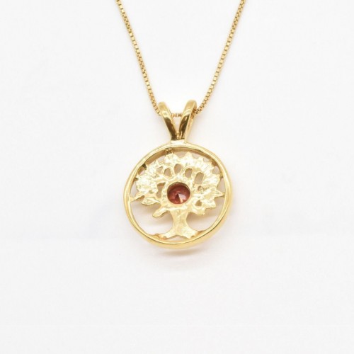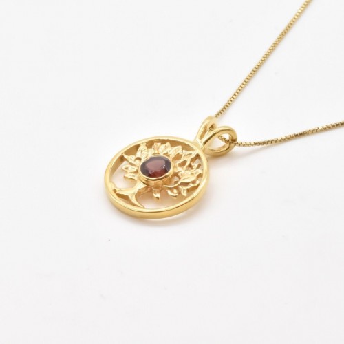 Garnet Tree Pendant set with a Natural Garnet in a top grade, diamond cut & deep red color, at size 5mm (0.5 Ct) from Mozambique.