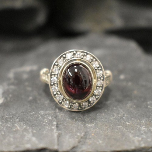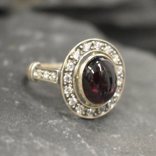 Genuine Garnet Ring – Red Vintage Ring – Antique Oval Ring