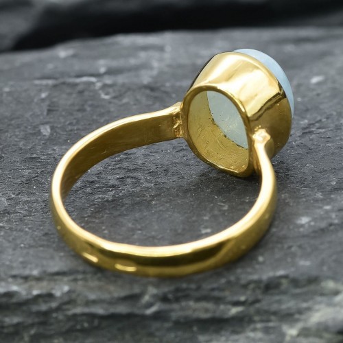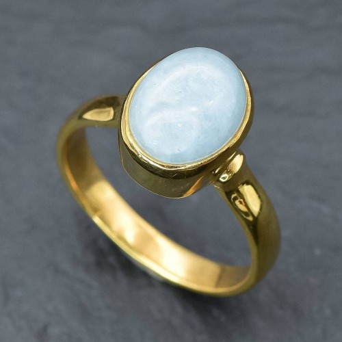 Gold Aquamarine Ring set with Natural Aquamarine in a top grade & stunning seawater color at 10x8mm (3 Cts) from Brazil.