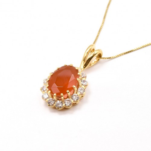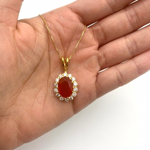 Gold Carnelian Pendant – Large Red Necklace – Princess Diana Necklace