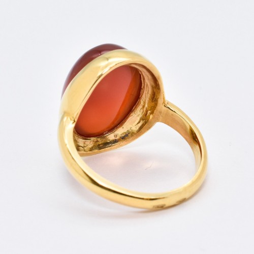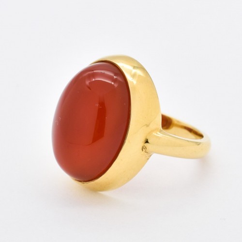 Gold Carnelian Ring set with Natural Red Agate in a cabochon cut & natural stunning red color, at 18x13mm (15 Cts) from Uruguay.