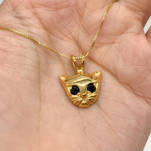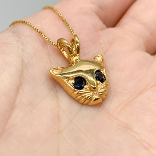 Gold Cat Necklace set with Natural Sapphires in a diamond cut & deep blue color, at size 3mm each (0.3 Ct combined) from Burma.