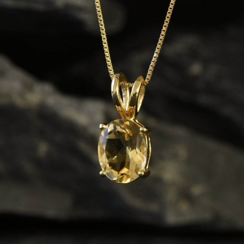Gold Citrine Pendant -Genuine Citrine Necklace – November Birthstone Pendant