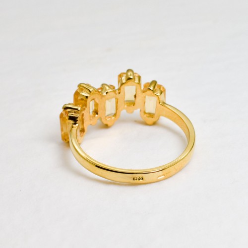 Gold Citrine Ring set with a Natural Citrine in a emerald cut & natural yellow color, at 6x4mm each (2.5 Cts all) from Brazil.