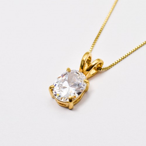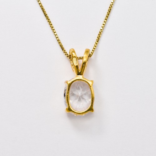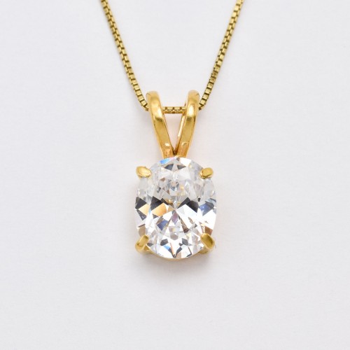 Gold Diamond Pendant set with a Created Diamond in a flawless clarity, diamond cut & deep green color, at 10x8mm size (3 Cts).