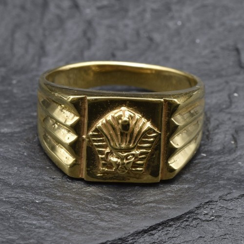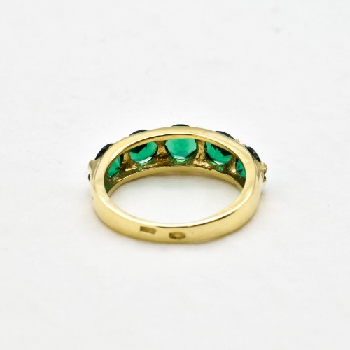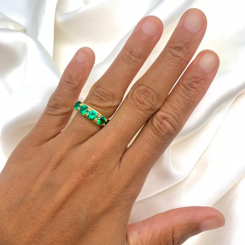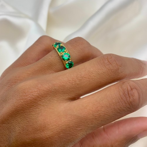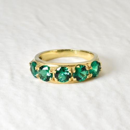 Gold Emerald Band set with Created Emeralds in a flawless diamond cut, clarity & deep green color, at size 5mm each (2.5 Cts). Gold Statement Band made of Gold Vermeil: Thickest 3 Micron Gold plate on Solid 925 Sterling Silver.