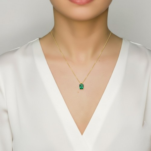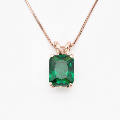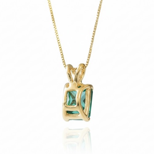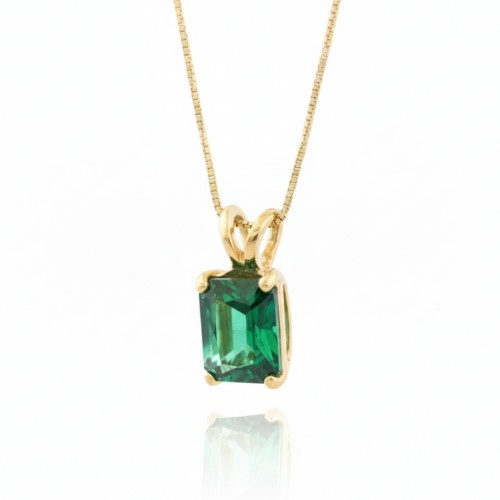 Gold Emerald Pendant set with a Created Emerald in a top grade, diamond cut & deep green color, at 10x8mm size, 3 Cts.