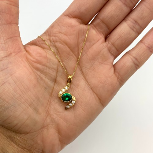 Gold Emerald Necklace – Green Emerald Necklace – Gold Vintage Pendant