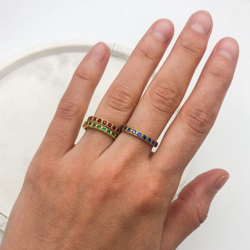 Gold Emerald Ring – Emerald Eternity Band – Gold Stackable Ring