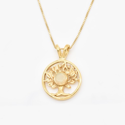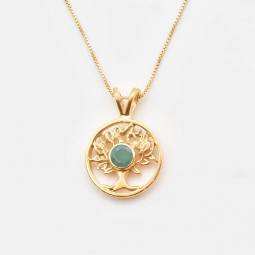 Gold Emerald Tree of Life Pendant set with a Natural Emerald in a diamond cut & a green natural color (untreated & undyed = rare) sourced from Colombia.