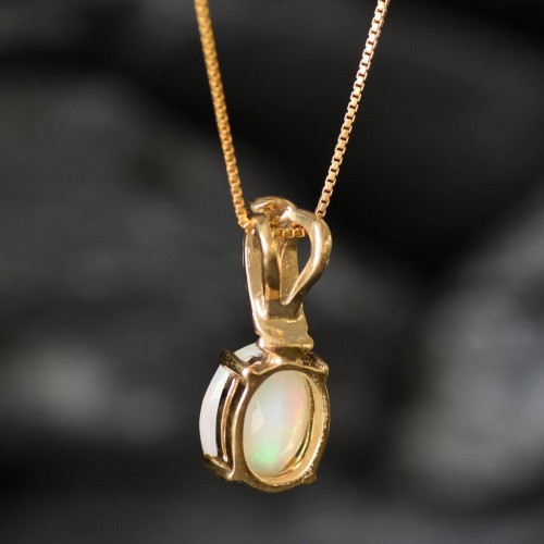 Gold Opal Pendant set with a Natural Ethiopian Opal in a top grade, diamond cut & stunning bright flashes of fire color, at 10x8mm (3 Cts) from Ethiopia.