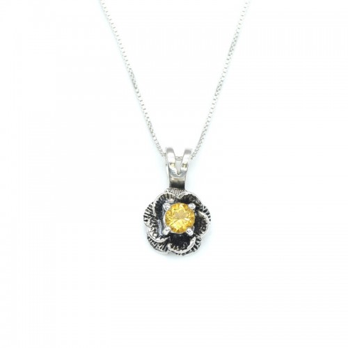 Gold Citrine Pendant set with Natural Citrine in a top grade and diamond cut at, at 5mm size (0.6 Cts) from Brazil.