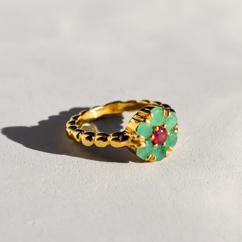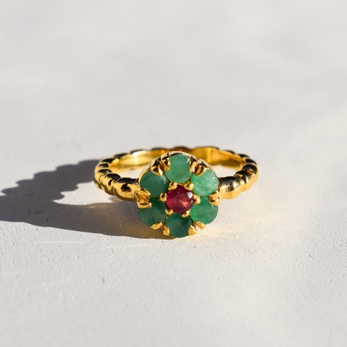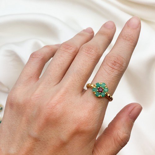 Gold Flower Ring – Natural Emerald Ring, May Birthstone Ring