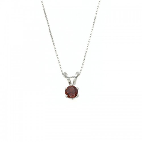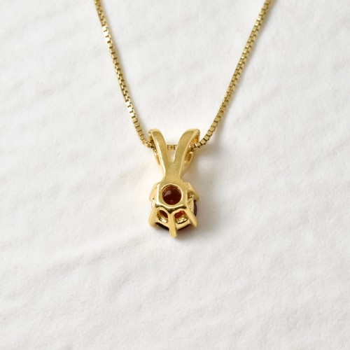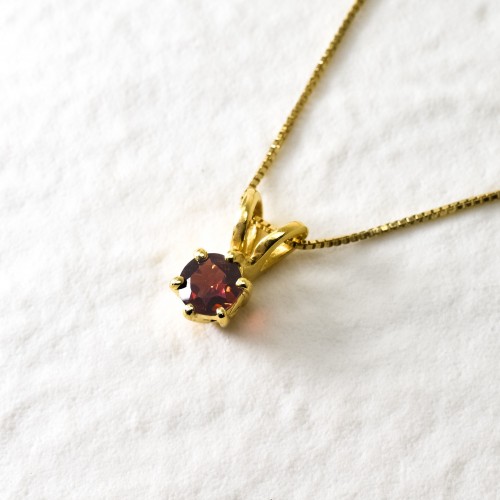 Gold Garnet Pendant set with a Natural Garnet in a diamond cut & deep red color, at 5mm size (0.6 Cts) from Madagascar.