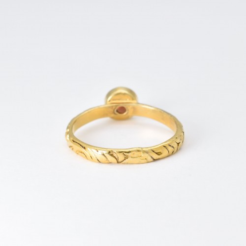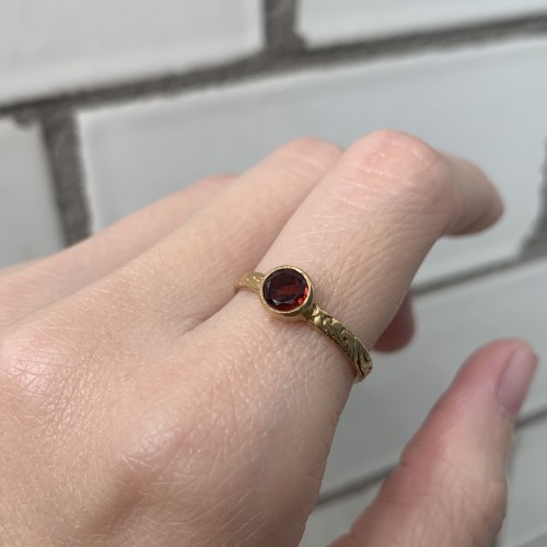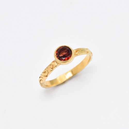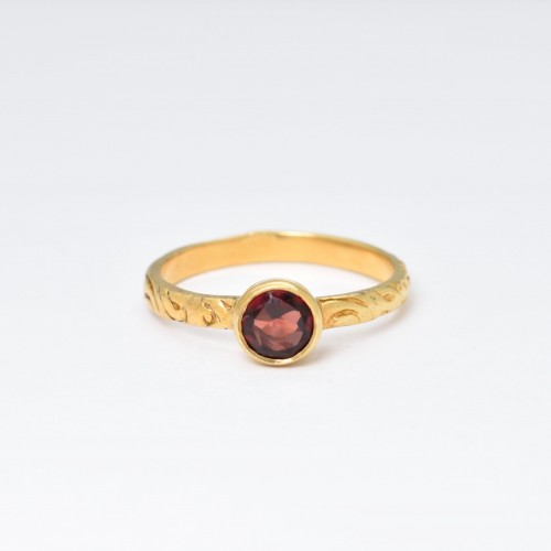 Gold Garnet Ring – Dainty Vintage Ring – Red Bezel Ring
