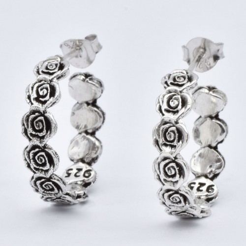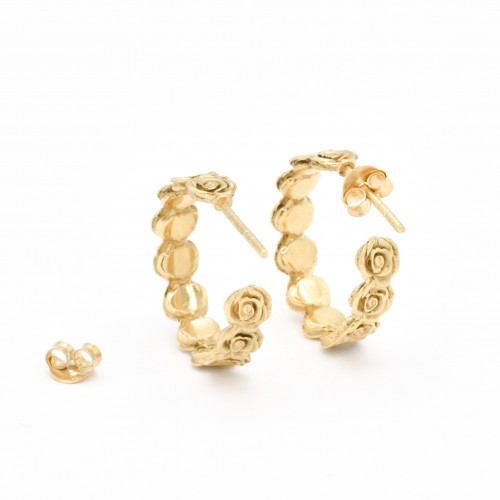 Gold Hoops Earrings – Gold Roses Earrings – Flower Hoop Earrings