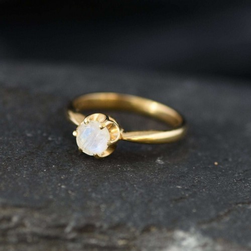 Gold Moonstone Ring – Rainbow Moonstone Ring – June Birthstone Ring
