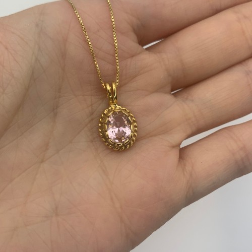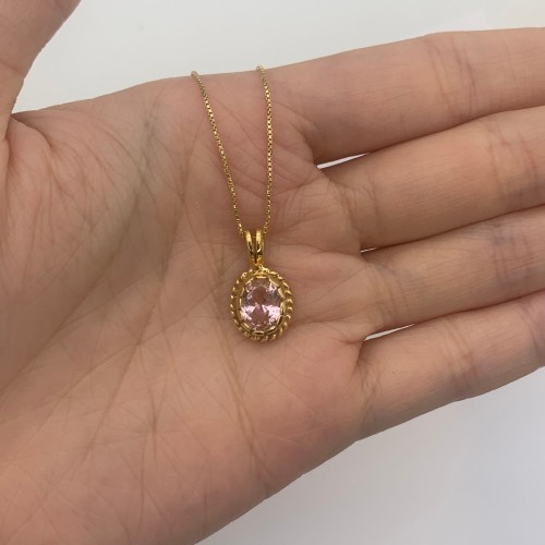 Gold Morganite Pendant set with Created Morganite in a flawless clarity, diamond cut & stunning pink color, at 8x6mm (2 Cts).
