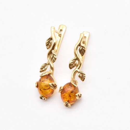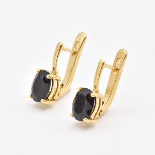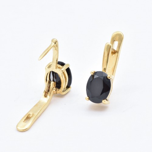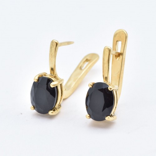 Gold Onyx Earrings set with a Natural Onyx in a top grade & natural black color, at 8x6mm each (4 Cts a pair) from the Baltic Sea.
