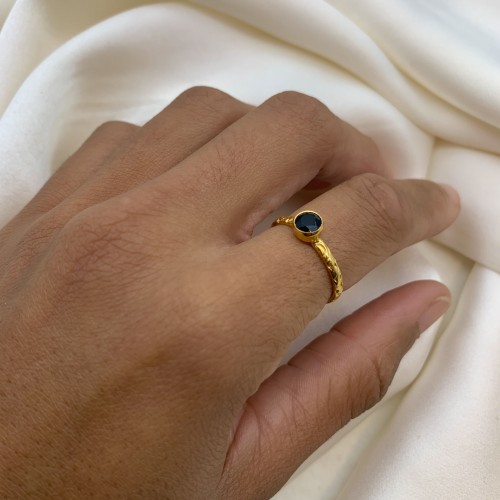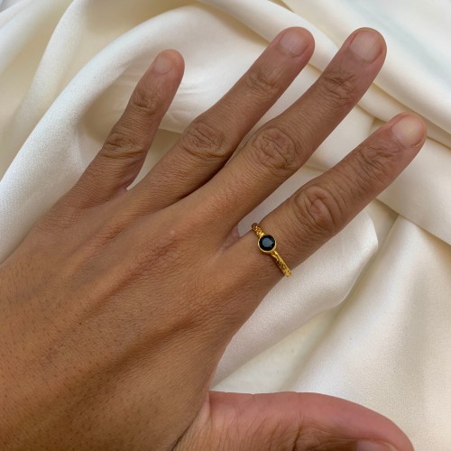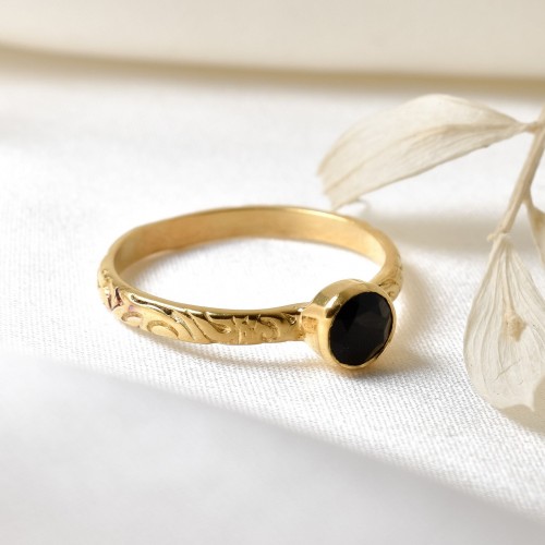 Gold Onyx Ring set with a Natural Onyx in a top grade, diamond cut & stunning natural black color, at 5mm, 0.5 Carat, from Europe.