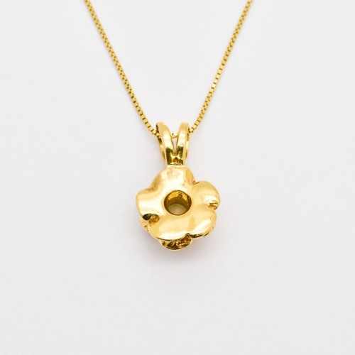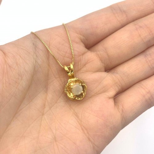 Gold Opal Flower Pendant set with Natural Opal in a diamond cut & natural flashes of fire color, at 5mm (0.5 Cts) from Ethiopia.