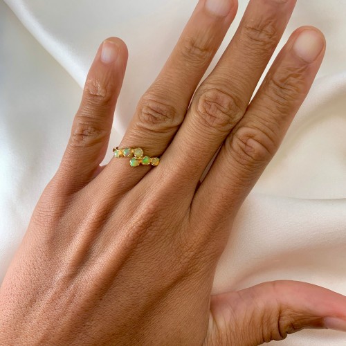 Gold Opal Ring set with Natural Opals in a top grade with bright natural flashes of fire , at size 3mm each (1 Cts combined) from Ethiopia.