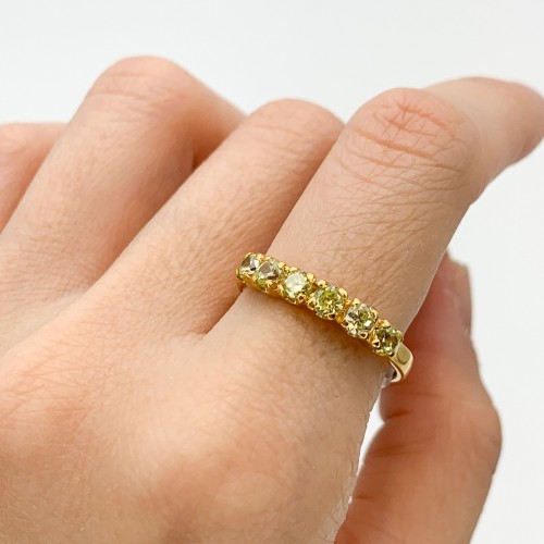 Gold Peridot Ring set with Created Peridot in a flawless clarity & light green color, at 3mm each (0.7 Cts combined).