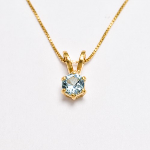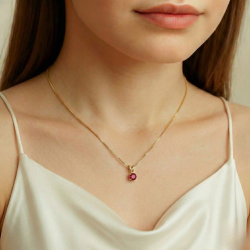 Gold Ruby Pendant set with Created Ruby in a perfect diamond cut, flawless clarity & stunning red color, at 5mm diameter (0.46 Cts).