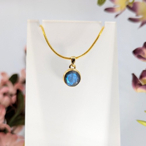 Gold Rutilated Quartz 1″ Pendant S.S. #LV7944