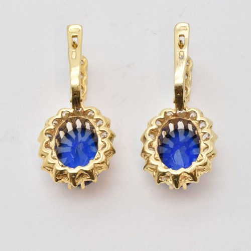 Gold Sapphire Earrings, Royal Blue Earrings, Gold Vintage Earrings