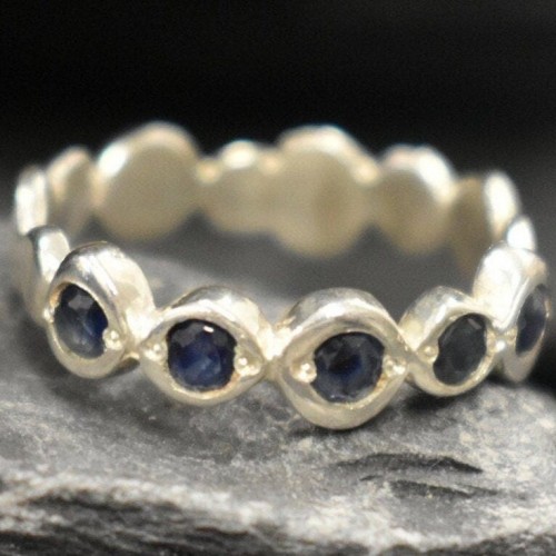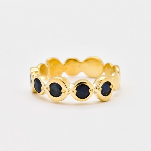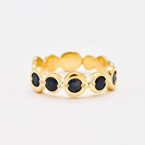 Sapphire Gold Ring set with Natural Sapphire in a diamond cut & natural blue color, at size 3mm each (1 Ct combined) from Burma.