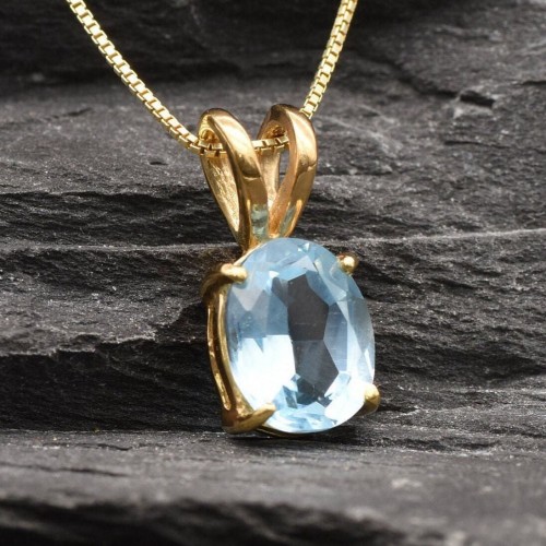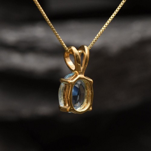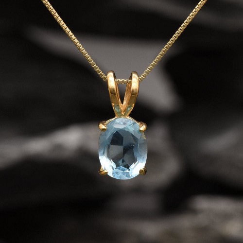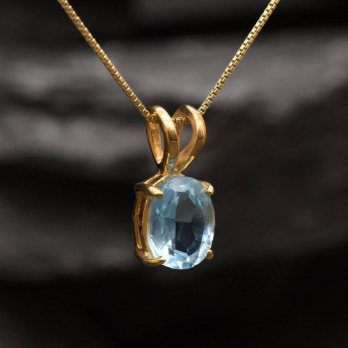 Matching Earrings: Please ask me Details: • Natural Blue Topaz sourced from Brazil • Dimensions: Pendant Height 17mm, Width 8mm • Free Complimentary Chain • 18k Gold Vermeil ❀ Each Natural Gem is unique & will have Slight variations from the product pictures “no two Natural Stones are alike” SKU 2829